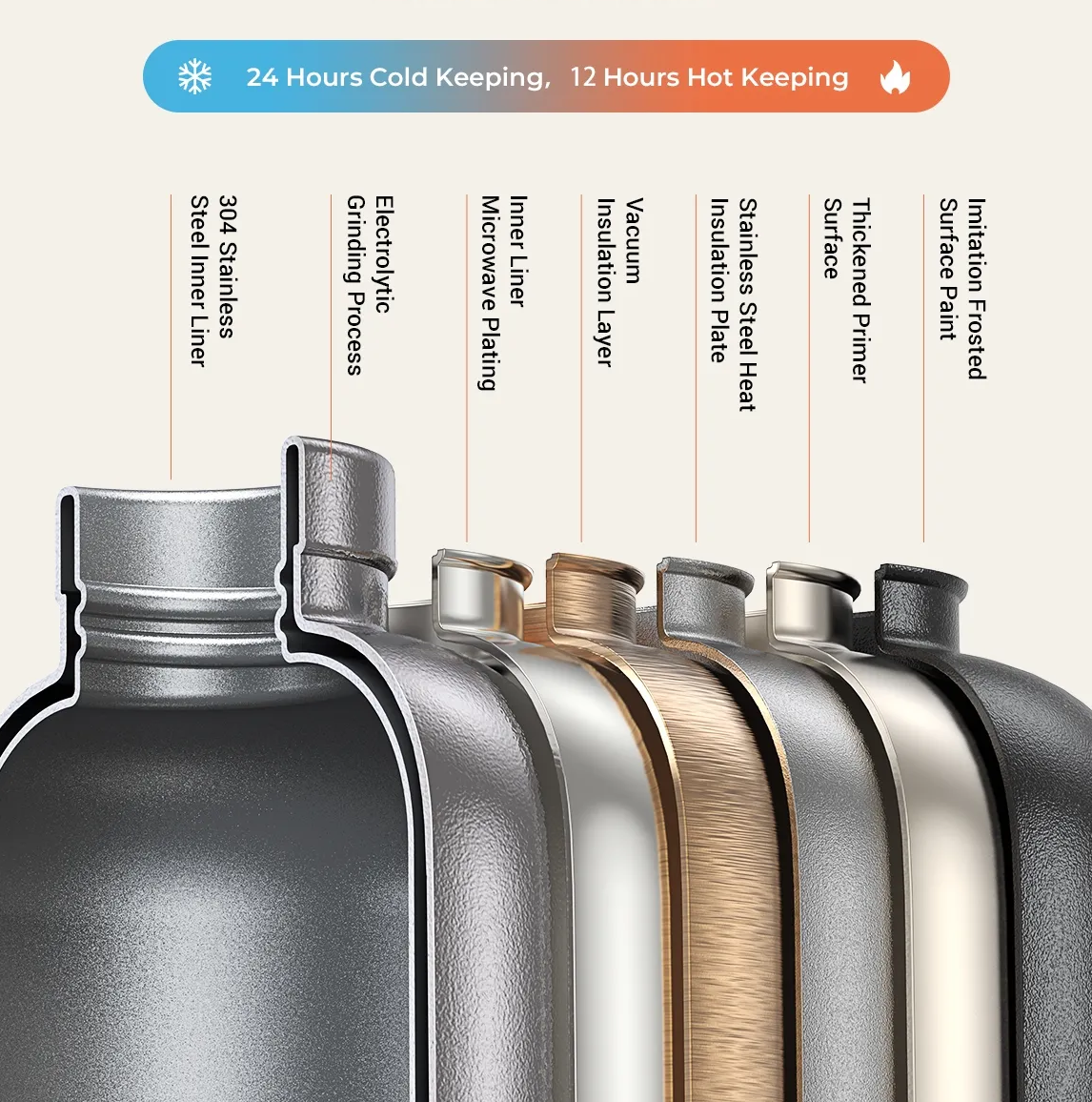 Designed for active lifestyles. Keep your drinks ice-cold for up to 24 hours or piping hot for 12 hours with its premium 304L food-grade stainless steel construction.